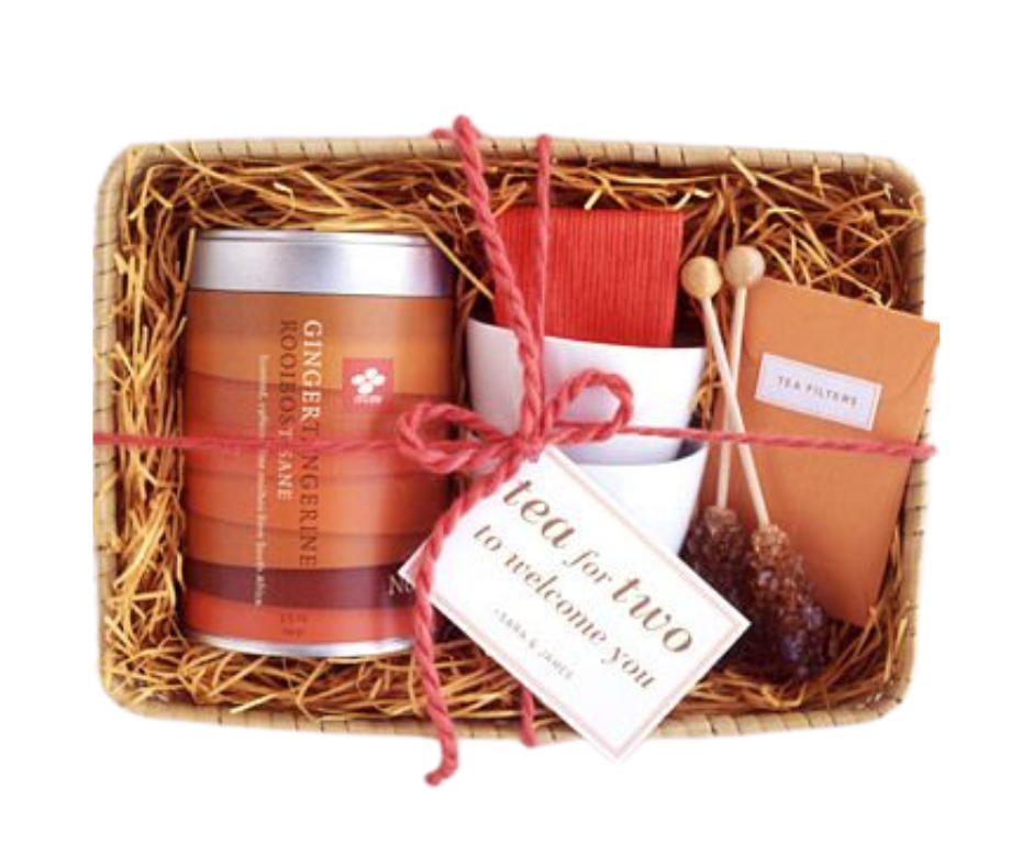 Grab a canister of tea, some honey sticks, a coffee cup and tea packets for a cozy little tea present. You can elevate this by adding a cute little tea pot and set.